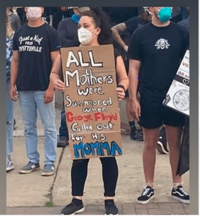 We could hear this grown man call out for him mother. The pain was real. I felt that call as if it was one of my three grown children. My daughter posted an image stating “All Mothers were summoned when George Floyd called out for him Momma”.I can’t credit the photo as the author is unknown, if you know who’s photo it is, let me know I’ll add.